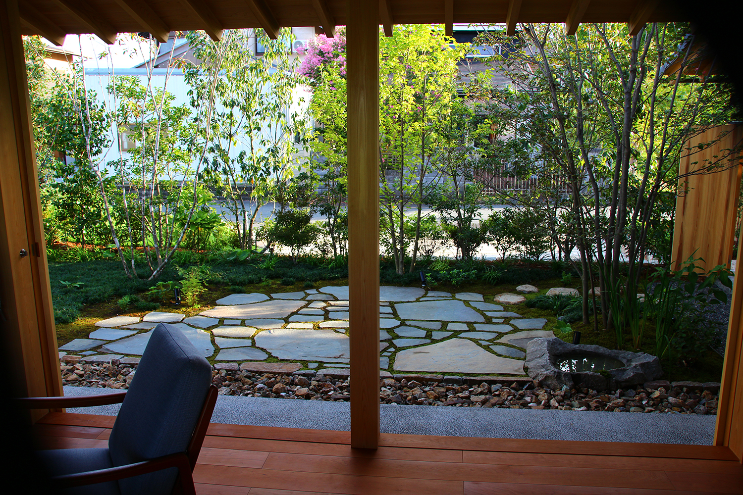樹木・地被類・石材など全ての材料を現地で自身の目で確かめ使用した。